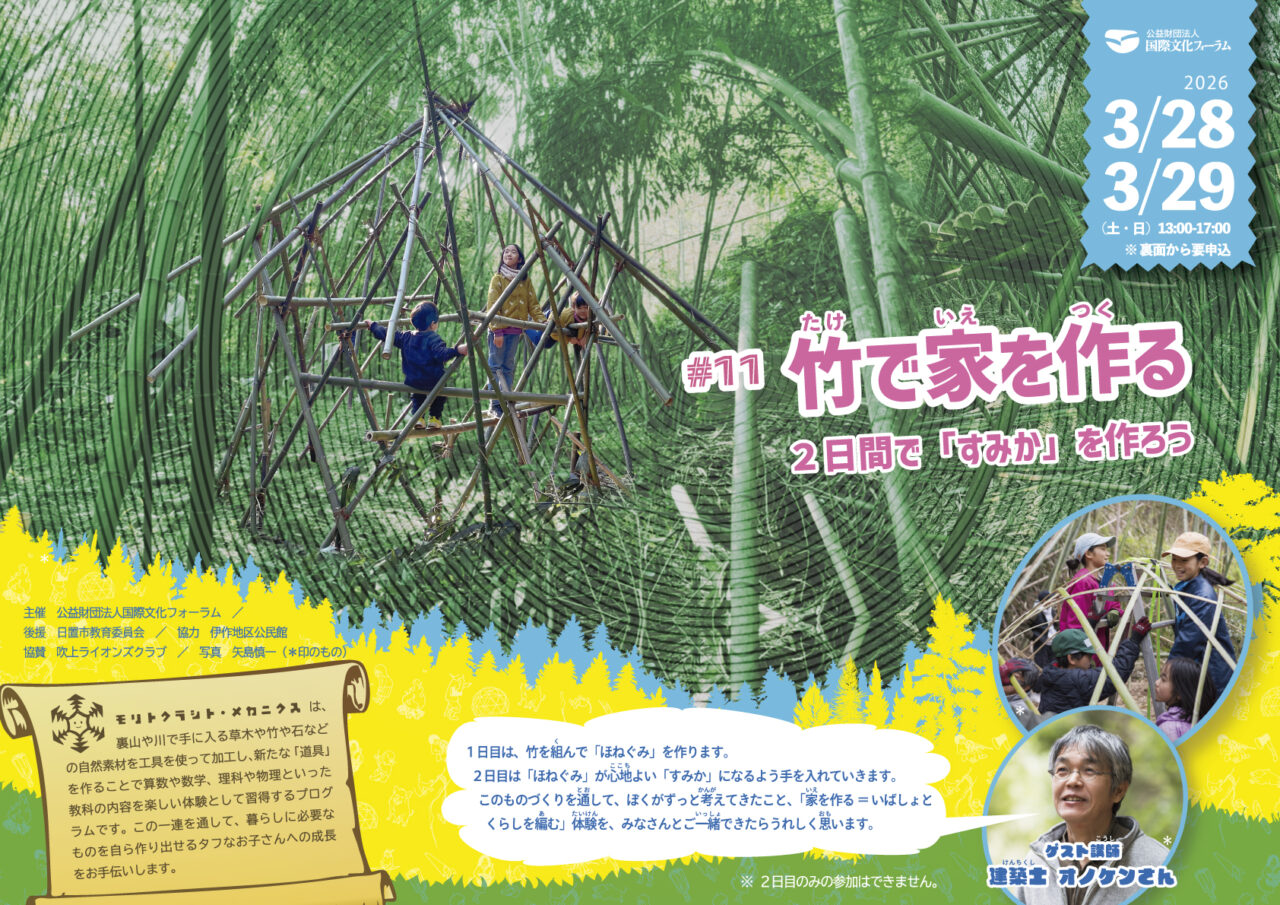 ご無沙汰してます。テンダーです。 来たる3/28,29で、これまで鹿児島県日置市で取り組んできたプログラム、モリトクラシト・メカニクスの2025年度最終回「竹で家を作る... -