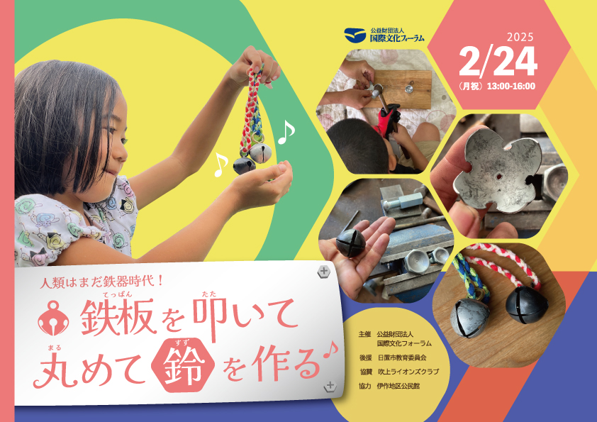 2/24 人類はまだ鉄器時代! 鉄板を叩(たた)いて丸めて鈴を作る(於:鹿児島県日置市)/「モリトクラシト... 定員に達したため申し込みを締め切りました。キャンセルがあった場合は、このページで追加募集を行う予定です。 わたしたちの暮らしをとりまくものに目を向けると、日々使...