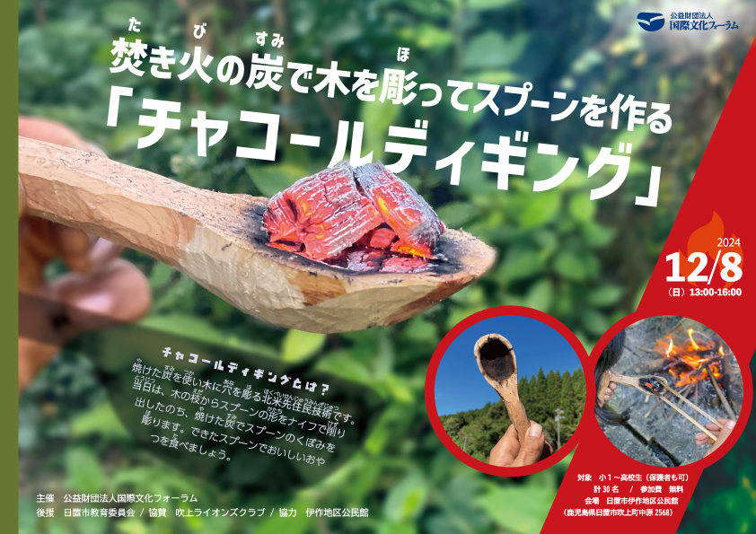 12/8 焚き火の炭で木を彫ってスプーンを作る ー チャコールディギング(於:鹿児島県日置市)/「モリトクラ... 定員に達したため受付を締め切りました(11/9)。キャンセルなどによる追加募集がある場合は、こちらのウェブなどでお知らせします。 チャコールディギングは、焼けた炭を使...