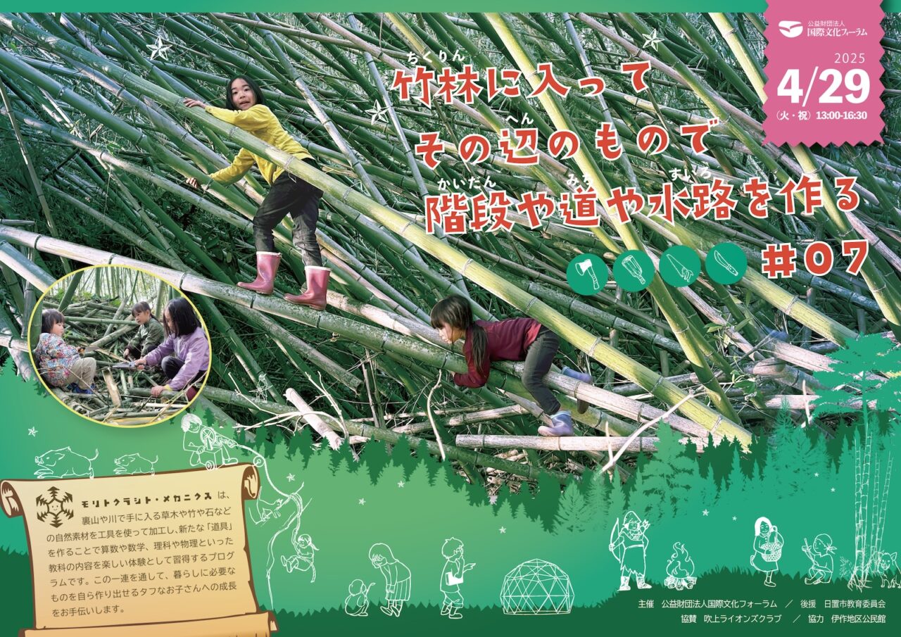 4/29 竹林に入って、その辺のもので階段や道や水路を作る(於:鹿児島県日置市)/モリトクラシト・メカニク... 大きな機械や専門的な知識・技術がなくても、竹林(竹山)にある竹や木の枝、葉っぱを使って、竹林に手を入れる方法を体験します。たとえば、人が通れる道を作ったり、斜面...